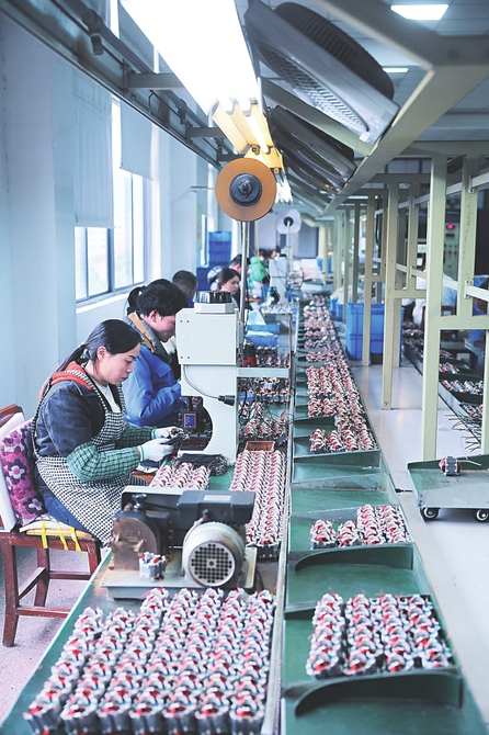 图②:1月29日,在位于金华市金东区的金华精研机电股份有限公司车间内,自动化流水线上在生产充气泵。该公司主要产品为充气泵,主要销往国内市场及欧美、日本、东南亚等海外市场,是国家高新技术企业。