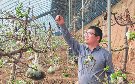 1月29日,记者在忻州市忻府区欣园农庄南肖绿色果蔬基地看到,董事长娄渊斌正忙着检查车厘子植株开花情况。据了解,欣园农庄11座大棚里共栽植了近1000株车厘子树,品种涵盖布鲁克斯、拉宾斯、俄罗斯8号等6种。