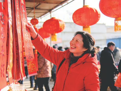 随着春节临近,浓浓的年味扑面而来。连日来,运城市各地集市熙熙攘攘,年货琳琅满目;红灯高挂,街巷映红,暖意融融。河东大地张灯结彩、笑语盈盈,整座城市沉浸在喜迎马年新春的祥和与热闹中,勾勒出最动人的新春盛景。 图为临猗县楚侯乡集市上,村民正在挑选春联。