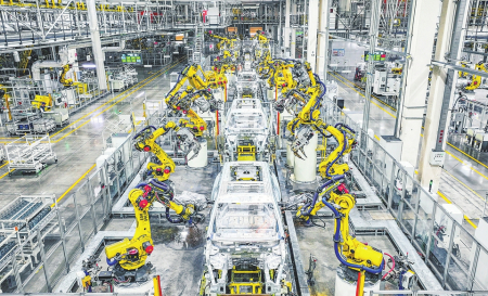 重庆市两江新区的赛力斯汽车超级工厂自动化生产作业现场。新华社记者王全超摄