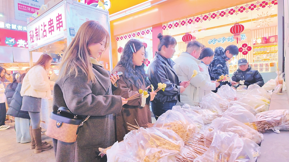 “春节人多,外地游客也多,我要是歇了,大家想吃都吃不上。能让更多人尝尝咱太原的特色小吃,再辛苦也值。”寒风中,赵建伟不停添食材、换蘸料、招呼客人,双手冻得发红却始终面带笑意,在他看来,让食客吃得满足就是自己新春里最踏实的收获。