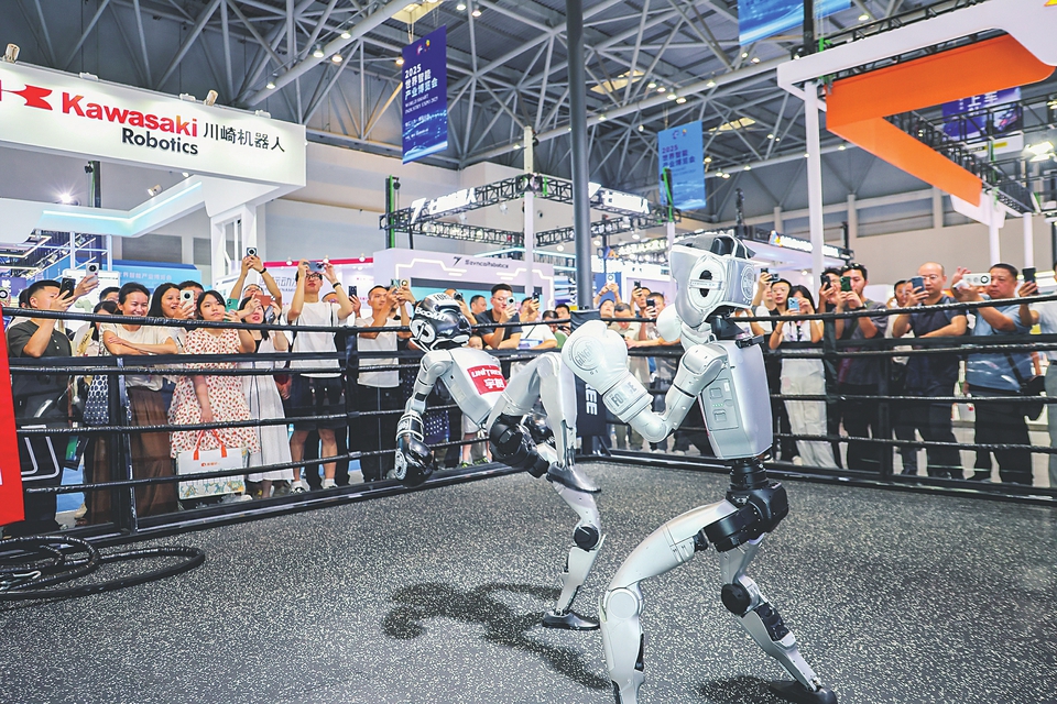 2025年9月5日,观众在2025世界智能产业博览会智能机器人展区观看机器人拳击赛。新华社记者黄伟摄