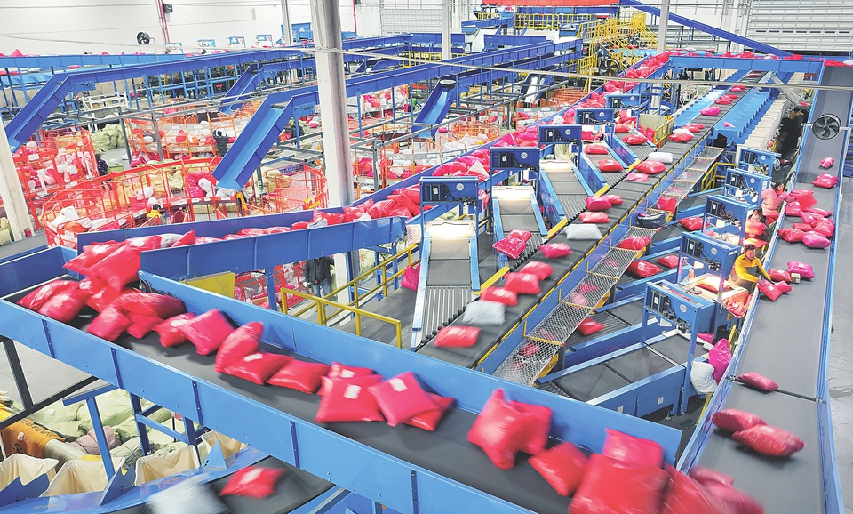 “十四五”期间,我国以跨境电商、保税维修、市场采购等为代表的新业态新模式助力各国消费者、生产者“买全球、卖全球”,成为稳外贸的重要引擎。在江苏南通一家国际物流园分拣中心,工作人员在分拣货物。新华社发(许丛军摄)