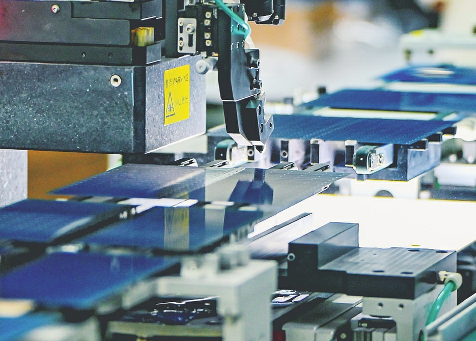 2025年,电动汽车、光伏产品、锂电池等“新三样”产品出口规模接近1.3万亿元,比2020年增长3.5倍。图为在新疆巴音郭楞蒙古自治州若羌县一家新能源有限公司,全自动划片机在切割光伏电池片。新华社记者陈朔摄
