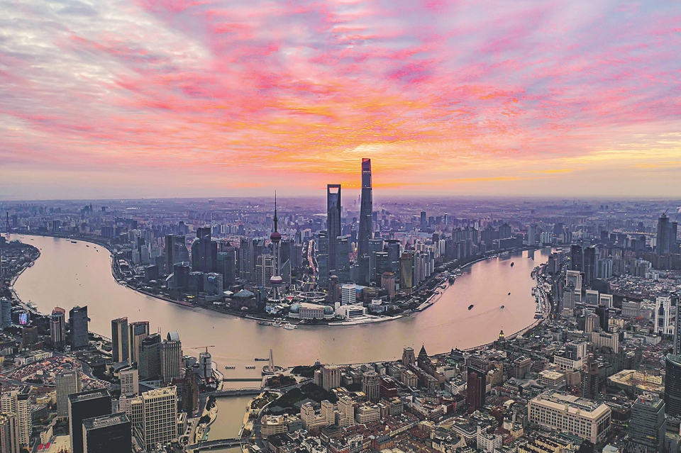 上海陆家嘴朝霞(无人机照片。) 新华社发(杨帆摄)