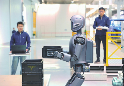“十四五”以来,一系列支持举措帮助民营企业增强信心、轻装上阵。截至2025年5月底,全国实有民营经济组织1.85亿户,占经营主体总量的96.76%。图为江苏无锡的一家民营企业工程师在调试人形机器人。新华社发(朱吉鹏摄)
