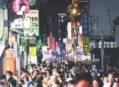 “十四五”期间,非物质文化遗产、文博IP等消费爆款频现,城市漫步、中式茶饮等成为时尚消费潮流,各地推行各类优惠、补贴,释放消费潜能,激发市场活力。图为游客在长沙市太平古街休闲游览。新华社记者陈振海摄