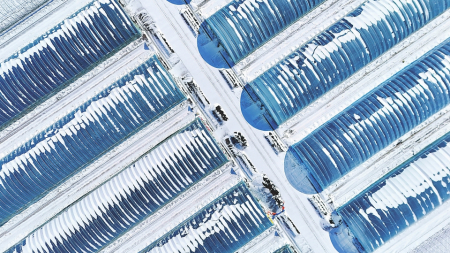 ③ 2月28日,在双鸭山市拍摄的黑龙江北大荒农业股份有限公司友谊分公司水稻育秧大棚。