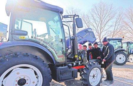 ② 2月28日,农民在黑龙江省齐齐哈尔市建华区农机大市场选购农机。