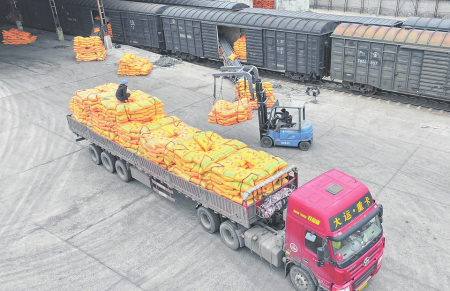 连日来,山西潞安化工丰喜泉稷能源有限公司开足马力加紧生产春耕急需的尿素产品,工人们加班加点对生产出来的尿素进行包装、码垛、转运、装车,每日装车化肥2000余吨。 该公司全力调配车辆,优先装车、优先挂运,为春耕农资运输专门开辟绿色通道,组织开行农资化肥专列,以高效运输保障农资化肥及时销往四川、广东、湖北、江西、广西等地,满足春耕播种用肥需求,助力春耕生产。