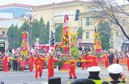 3月3日,2026年长治市“金马奔腾闹元宵”民间非遗文艺展演在该市八一广场启幕。展演以舞龙、舞狮、秧歌、戏舞、踩高跷、跑旱船、扛妆、晃杠、威风锣鼓、瞪眼家伙等民俗社火非遗文艺节目为主,来自长治市12个县(区)的3000余名演职人员身着节日盛装在欢快的锣鼓声中载歌载舞、共度佳节,展现出了非遗文化的独特魅力。 图为群众齐聚现场观看非遗表演。