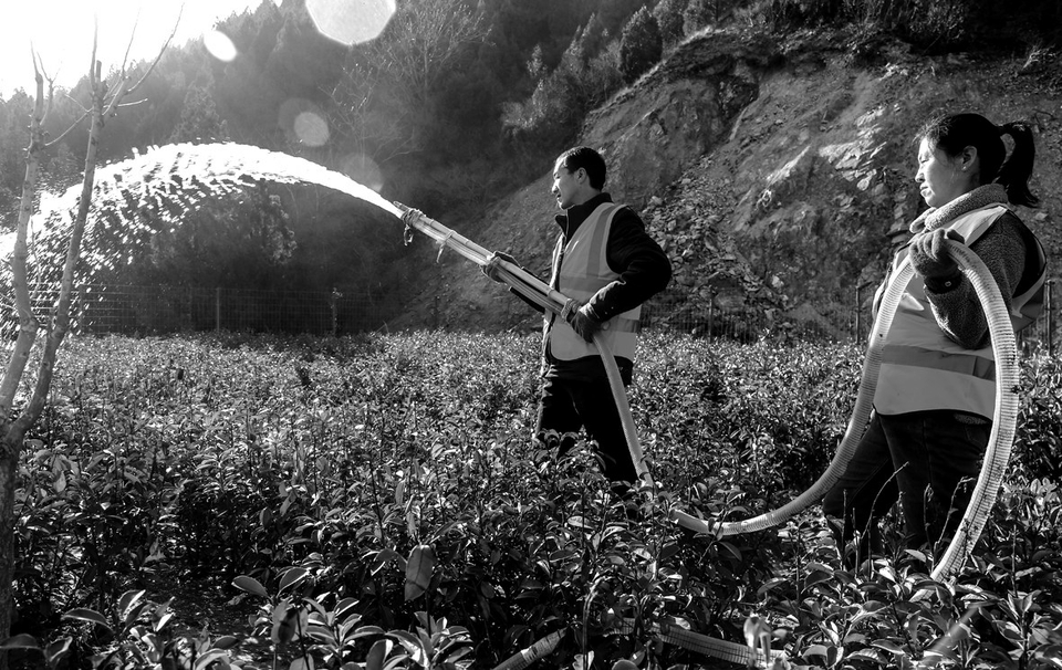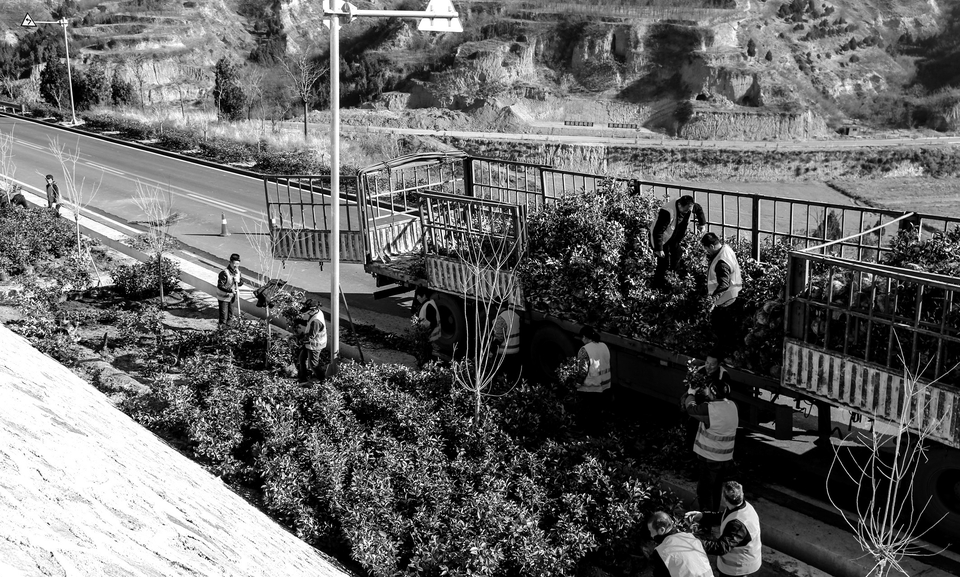 2月19日,在运城市夏县沿黄一号旅游公路,造林专业队队员正在进行植树绿化作业。当日进入雨水节令,正是植树造林重要时期,夏县交通运输局抢抓农时,组织山西铭泰路桥有限公司造林专业队伍上阵,在沿黄一号旅游公路沿线景点营造小片林和对标准绿化带内的花草树木进行补植补栽,黄河岸边又增添了新的生态底色。 张秀峰 摄
