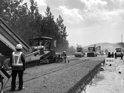 试验段全长约268米,设计厚度20厘米。为确保高标准完成试验段摊铺作业,公司压实责任,强化举措,组织召开专题会议,从各个细节完善施工方案和作业工序,有针对性地对施工现场作业人员开展技术培训,从机械设备、拌和工艺、碾压工艺、摊铺温度、运输车辆、接缝、接头边角处理等方面进行技术和安全交底,确保试验段的顺利铺筑。