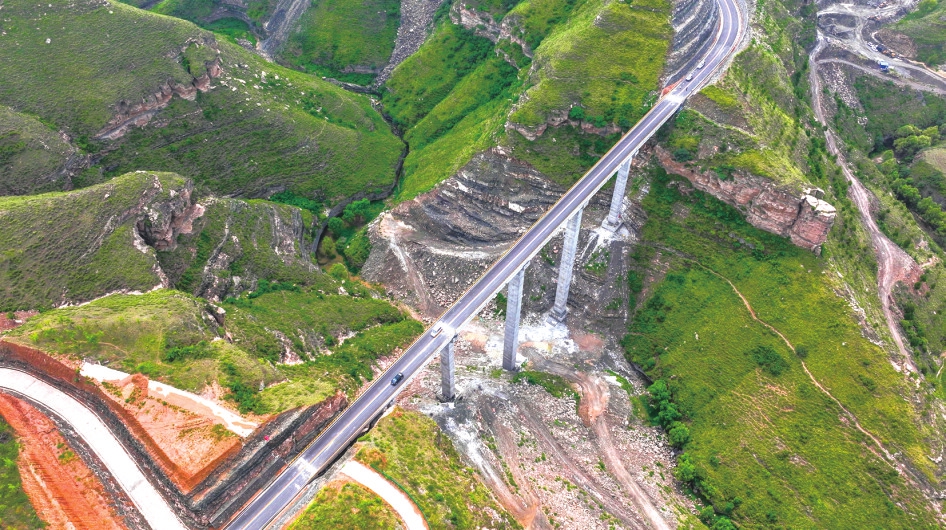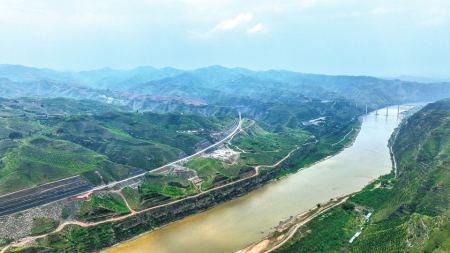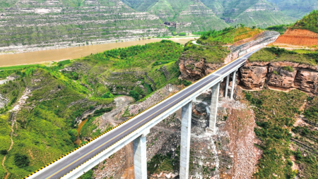 “从高空俯瞰就像一条横卧在黄河东岸的巨龙”,在黄河一号旅游公路(石楼段)项目三标段已经完成路面铺设的滩村一号大桥上,项目负责人正带领着几名摄影爱好者用无人机进行航拍。他告诉记者,他们的标段全长12公里,目前工程完成率已经达到了98%,到9月底即可实现交工。