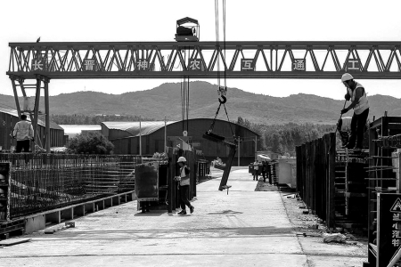 在施工现场,门吊林立、焊花四溅,施工人员坚守岗位、配合默契,一派热火朝天的建设场面。“当前,我们在保质量、保安全的前提下,组织了10多台机械同步开展作业,全力加快建设进度。同时,面对高温天气,我们安排工人错峰施工,并准备防暑降温物品,全力保障施工人员健康安全和项目施工进度。”该项目副经理郭少波介绍。