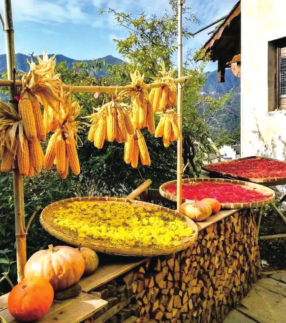 不知道你会不会像我这般,走出都市围城,来到这空灵纯净的山里,少了人情交往的斤斤计较,没了勾心斗角的纷扰,似乎束缚着的身子得到了解脱,累积的烦恼也得到了释放。饮一碗山泉水,尽管没有珍贵的绿茶那般讲究,却入口甜润,沁人心脾,留在唇齿间的是清爽的味道。嗅一把花草香,也许没有茉莉牡丹那样娇艳,却纤巧朴素,弥香久远,插在鬓角衣领更有迷人的韵味,这或许就是山里的秋天带给我们别样的体验吧!