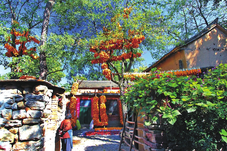 一直说要去山里看看,最喜欢的,还是冯家洼的秋天。驱车几十公里,我们来到冯家洼。这是一个被群山环抱的小村子。远远望去,高高的锥子山下是连绵起伏的群山。有道山梁弯成巨大的臂膀,像胳膊一样,把小山村揽在怀里,一条小路被绿树掩映着,时隐时现,牵连起沿沟坡居住的零散人家。村后是层层叠叠的山坡,生长着挺拔的白皮松、雄壮的橡子树、俏丽的黄花栌,还有叫不上名字的树木,以及丛生的野草。村子下面是一层层、一道道山田,长满了玉米、谷子、红薯、油葵等,仿佛挂在天边的绿毯,为这个祥和的小山村装扮出一道靓丽的风景线。