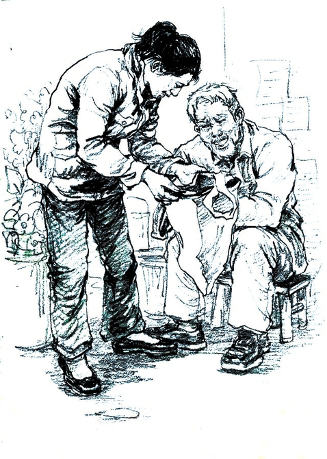 今年清明节前,我回老家上完坟,直接去了岳父家。这次到家,我看到岳父拄着拐杖,驼背的身体明显地不如往年了。在时光的脉络里,我隐隐地感到岳父今年能否熬过?怀着一颗牵挂的心,我和妻子、大姐、二姐、内弟商量后,决定在之后的时间里,家里尽量晚上留两个人轮流照顾岳父岳母。