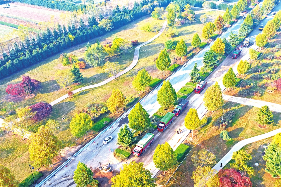 10月31日,在黄河一号旅游公路临汾市襄汾县丁村旅游公路建设项目现场,施工单位正在进行路面水稳层铺设作业。 黄河一号旅游公路临汾市襄汾县丁村段是我省黄河、长城、太行三个一号旅游公路规划的项目之一,也是襄汾县的重点工程。该工程起点为国道108线沙女村西,经闫店村、敬村,终点位于丁村村东,全长3.264千米,总投资2918.58万元。项目完成后,将成为襄汾县丁村遗址文化旅游发展的重要交通通道,对促进当地文旅融合发展,保障群众安全出行具有重要意义。