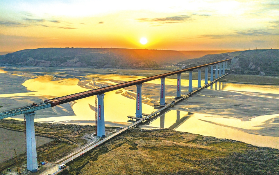 11月13日,临猗黄河大桥项目建设现场一派热火朝天的景象,机械轰鸣,焊花四溅,施工人员正在加紧施工,全力推进项目建设。该工程是国家高速公路菏宝线G3511的控制性节点工程,是我省高速公路网规划“4纵15横33联”的重要组成部分。截至目前,钢箱梁顶推完成3550米,占总长的93%,计划年内合龙。