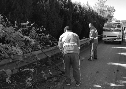 第一时间组织召开专题会议,统筹部署路域环境整治工作。积极采取“机械清扫+人工作业”模式,对巡查中发现的路面障碍物、抛撒物等及时清理,保障良好的通行环境。及时更换维修破损刺丝网、波形护栏、防眩板等交安设施,确保安全警示设施功能完好。有效修剪遮挡标志牌、指示牌以及伸出路面影响行车视线的树枝,确保交通安全标志清晰醒目、行车视野良好。不断排查桥梁、涵洞构造物等,清理疏通桥梁泄水孔、伸缩缝,确保排水设施运行正常。常态化开展路面病害集中整治和跟踪问效,巩固提升整体路况水平。