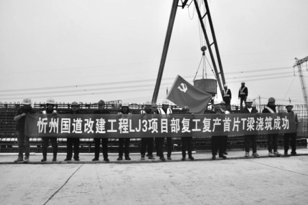 3月4日,忻州国道改建工程首片T梁成功浇筑。