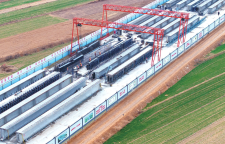 3月18日,在临汾市襄汾县国道108线过境公路改线项目1#预制梁厂内,中交一公局集团工人严格按照设计要求,科学把控桥梁质量,加紧生产T型预制桥梁,扎实开展钢筋下料、绑扎、焊接和桥梁制模、浇筑、养护等工序作业,为后续公路桥梁施工奠定坚实基础。