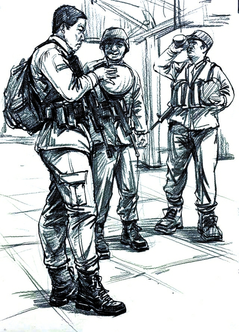 新兵人伍和新学员入学异曲同工,都要进行强化训练。学员大多来自战士,但要优于战士。可以说,学校对学员的素质和能力是挑剔苛刻的,训练强度更大,要求更严,标准更高。入学的强化训练以队列和体能为主。开训的第一个科目是“站军姿”,最简单的也是最难的。初秋季节,仍是热气逼人。两腿挺立、头正颈直地站数小时的军姿,让人难以坚持和支撑;汗水像虫子一样从全身每个毛孔向外蠕动,夏常服开始粘在身上,汗水顺着脸颊流入嘴角,咸咸的,还有几滴汗水流进眼里,痒涩难忍。入学的激动和兴奋湮没在站立军姿流淌的汗水中,喜悦和亢奋消失在“魔鬼坡”高低起伏的环形山路上。