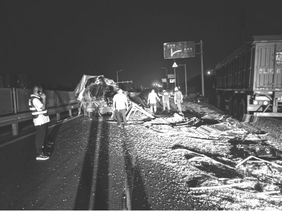 接到险情后,运城公路分局河津段领导带领应急人员迅速赶到现场,碎玻璃片在路面四处散落,夜间光线较暗,极易造成次生事故。救援人员挥舞铁锹快速清理玻璃碎片,路政人员配合交警维持疏导交通,大家顾不上疲劳埋头苦干。段领导边干活边提醒大家注意做好自身防护,防止被碎玻璃划伤,同时还要注意交通安全。清理完碎玻璃已经到凌晨1点。