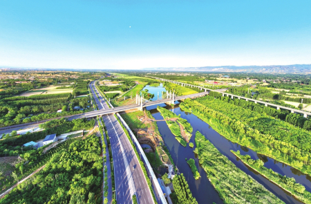 近年来,临汾市围绕完善交通网络布局,打造以高速公路、城市快速路、“四好农村路”于一体综合立体交通网络,形成“内外衔接、串联城乡、路畅景美”的交通网络和出行环境,为区域经济高质量发展,加快城乡一体化建设和城市更新提供有力支撑。 图为临汾市南外环公路俯瞰。矮塔斜拉立交桥双塔耸立,巨索飞度,凌空跨越,美不胜收。纵横交错的公路网络与高铁、田园、河流、村庄、绿植等相映成趣,构成一幅路畅景美的生态画卷。