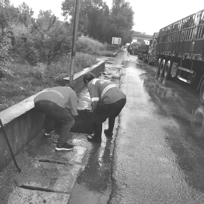与宁武段的预防性养护形成呼应,原平公路段针对持续降雨带来的即时险情迅速启动应急响应。段领导班子分片包干深入一线,带领养护人员加密雨天巡查频次,将桥梁、涵洞及易积水路段列为排查重点,通过及时清理边沟淤塞、修补路面坑槽、疏通排水设施,严防路面积水引发安全事故。面对国道338线出现的塌方和路基水毁缺口,该段第一时间调配人力机械,在设置警示标志的同时快速清除落石、填垫缺口,有效遏制水毁扩大态势,全力保障道路通行。