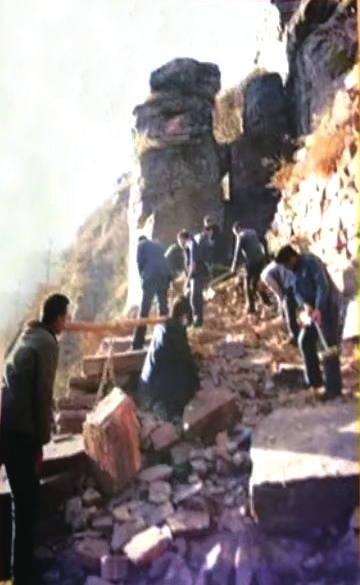 1982年至1985年,赵全妞、林小保两任村党支部书记一任接着一任干,挂壁公路建设在隆隆炮声中艰难延伸。