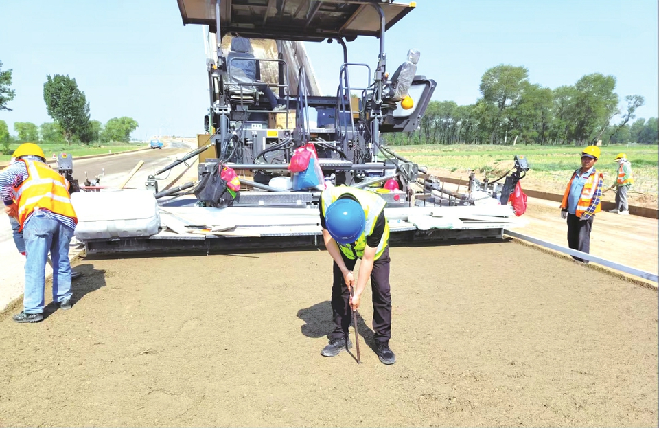 炎炎夏日,雁门关外,骄阳似火。国道336朔州段改扩建工程鏖战正酣。为确保工程质量,施工前项目部结合工程实际细化各环节标准,制定专项施工方案,组织开展施工安全、技术交底。摊铺过程中,严格控制混合料温度、摊铺速度,按照“紧跟、慢压、高频、低幅”原则严格控制碾压遍数,确保上面层压实度、平整度、宽度等各项指标满足设计及规范要求。