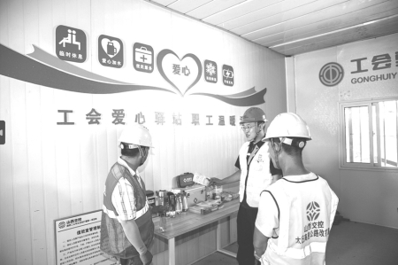 走进工会驿站,饮水机、应急药箱、共享充电宝、图书角、无线区域网络、空调等设施一应俱全。这里不仅是工人们休憩的“加油站”,更是他们的“精神驿站”。钢筋工老张笑着说:“以前休息时只能蹲在现场喝凉水,现在能坐在驿站里喝热茶、看看书,铆足了劲儿地继续干活!”