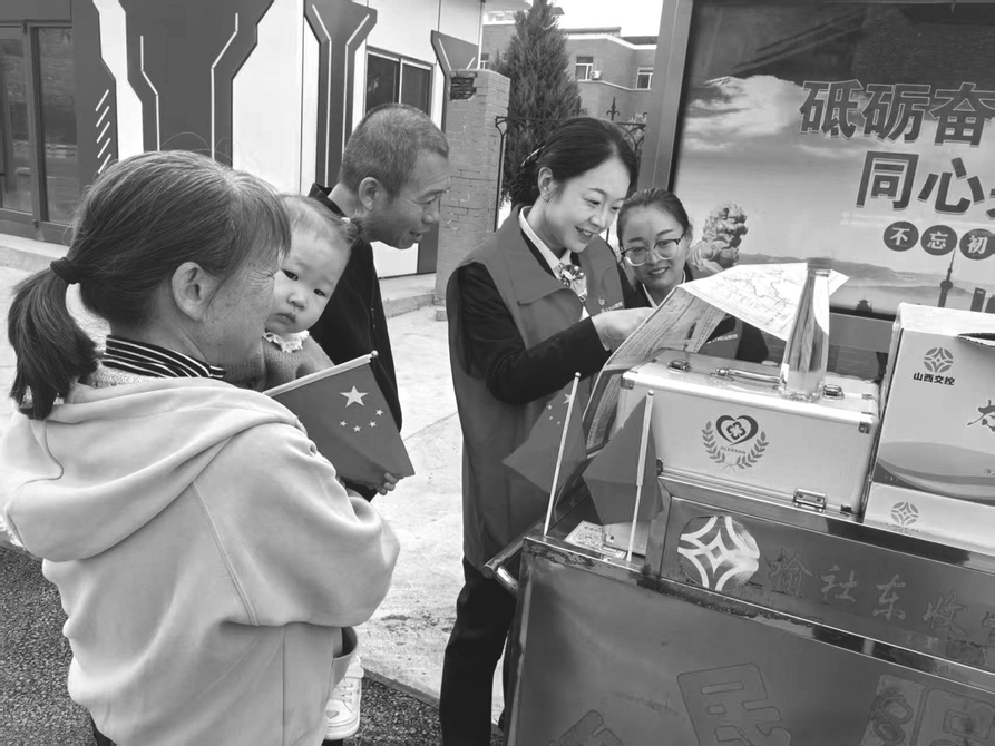 图1:榆和高速榆社东收费站组织志愿者开展暖心服务,设立便民服务台,为过往司乘提供周边景点咨询、旅游线路推荐等文旅延伸服务。 李端 摄