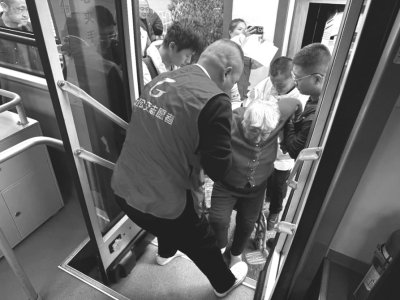 图4:太原公交集团一分公司青年志愿者帮助行动不便老人上车。薄凌西 摄