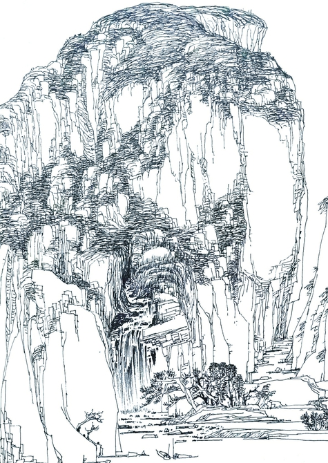 几个人沿石板路观庙宇了,另几个人则坐在池塘边,谈笑嗔骂,打闹戏谑,又返回学生时代,重温意气风发的青春年华。还是原来的你,还是曾经的我,青春小鸟在身边依依萦绕……那几个人怎么还不返回?难道庙后有路?去看看。于是,我与另两位沿着他们的足迹拾阶而上。是的,庙后还有路,而且按照路标:双龙瀑、情侣瀑、门河峡褶皱、天下第一石门,也就是说,这些景点都隐藏在庙后的山路中。我们准备往前走,一边看景,一边接应前面的同学。到达情侣瀑,映入眼帘的是两条瀑布平行而下,像是一对情侣相依相偎,形影不离,不缓不急贴石流动。再往前走,“天下第一石门”就矗立在眼前,大约高五十米,宽二十米,大自然鬼斧神工,在陡峭的石壁上,雕琢了一扇立体的巨大石门。一股清澈的溪水,从石门的那一边缓缓流过来,许多人以此为背景照相,我们几个人也留了合影。