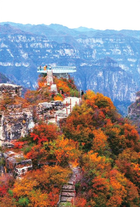 每年秋色渐浓时,太行山上就披上了五彩的盛装,红黄绿兰紫,五彩缤纷,姹紫嫣红,吸引了无数游客赏景游览。这个星期天正好无事,班长邀请我们去观赏红叶,相约前一天晚上到泽州公园门口商议行动的具体事宜。