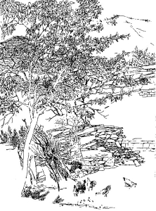 漫步在小区,绿树掩映着座座别墅,高楼耸立在片片树林间。无论你从哪条小路进入,无论你站在什么地方,无论你选择哪个角度,放眼远望,处处绿树,布满视野。高大的树木,错落有致,经过秋阳渲染,秋风凝炼,仿佛一幅精美的油画呈现在眼前——白皮松透着葱绿、银杏树染出金黄、五角枫点亮火红、黄花栌沉淀成浅紫,更有那海棠的鹅黄、漆树的橙红、杜梨的斑驳……那黄灿灿、红彤彤、绿油油的色彩,交相辉映,别有情趣。我们信步走进一个小亭,旁边有三棵粗大高挺的古树,呈“品”字形静立在亭子的周边。亭里一张石桌,几个石凳,正好坐下来依着亭柱小憩。此时若静静读一本喜欢的书,岂不妙哉?忽然间,亭柱上一幅联语跃入眼帘:“傍百年树,读万卷书”。