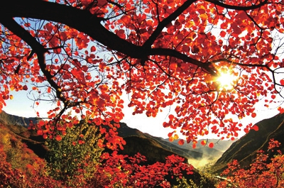 正是怀着对小汤山的诸多向往和好奇,我以外地人的视角,沐浴着金秋的灿烂阳光和飒飒凉风,穿行在小汤山的山林间,游走在疗养院的公园里,漫步在新建小区的绿荫中,开始了对小汤山的探幽之旅。金叶摇风,徐徐而来,小汤山的秋天就在眼前。旭日初升,霞光满天,一片片白杨树,挺直修长的身子,被涂上一层金光,更显得亭亭玉立。金黄的叶子在风中舞动,沙沙作响,优雅地唱出一支深情的歌,歌声伴随着秋风,唱出了秋天的风情。那一片枫林已经被秋色染红。一棵棵五角枫,如同山里的汉子,美美地喝了一壶老酒,醉红了脸颊,醉红了脖颈。夕阳西下,红霞照眼,满山满谷都是绯红的身影,从山脚到山顶,像国画家在宣纸上皴染了红彤彤的色彩。曲曲弯弯的林间小道,铺上了一层红黄相间的落叶,是那种还有水分,尚未干枯的叶子。踩上去,给人无声而绵软的感觉。树上,不时有枯叶徐徐飘下,落在你的肩头,或者你身边低矮的树枝和小路上,一股清纯的芳香随即沁入心脾。林中,偶尔有不知名的鸟儿在啁啾,更让人感觉到山里的幽静,不由人想起南北朝文学家王籍“阴霞生远岫,阳景逐回流。蝉噪林逾静,鸟鸣山更幽”的诗句来。
