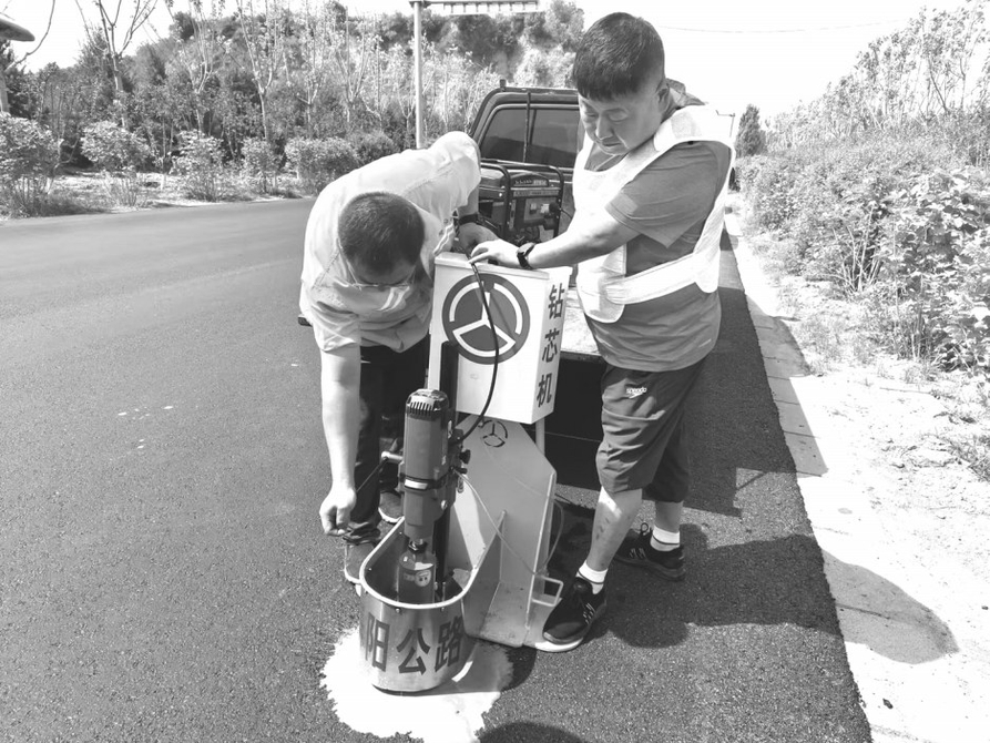 寿阳公路段研发的“沥青混凝土路面钻芯取样机”由水电钻、水箱、防尘罩等组合而成,配套2千瓦发电机,输出转速可达8001200转/分钟,操作简单,运行平稳。该设备体积小,一人即可操作,适用于路基、路面、桥梁、盖板、立柱等不同类型的混凝土结构体,可钻取混凝土、沥青混凝土试芯,用于抗压、抗折等试验。