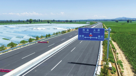 图为国道108线忻州境内砂河至石岭关改建工程沥青路面摊铺成型路段。项目路基、路面主体工程已全部完工,目前交安、机电等附属工程正在紧张施工中。 陶江 提供