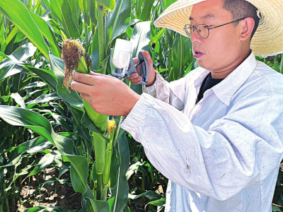 玉米成熟后,若遇持续阴雨天气,会导致玉米籽粒受潮。可以站秆扒皮通风晾晒,加强防水防潮管理,防止玉米籽粒在潮湿环境受到病原菌的侵染导致发病。