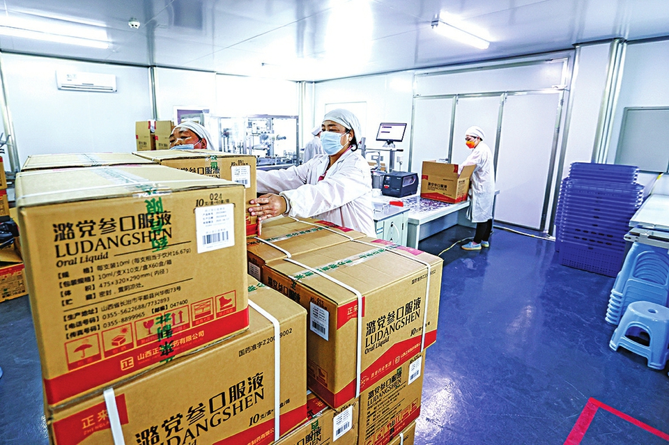 立秋时节,正来制药生产车间一派繁忙景象:初加工环节,工人熟练地进行清洗、分拣、烘干;提取车间内,切片、提取、分离等工序有条不紊;综合制剂车间中,多条生产线高速运转,赶制订单。在机器的轰鸣声中,一根根潞党参经多道工序,蜕变为口服液、片剂、胶囊等丰富产品。“包装联动线从一条增至三条,生产效率大幅提升。”正来制药质量总监介绍,“从原料到一支口服液,需经六道核心工序,依托先进技术与设备严控品质,确保产出优质高浓的产品。”目前,该企业潞党参口服液年产能超3亿支,单支市均价28元,不仅纳入国家医保目录,还入选新冠康复用药目录。产品体系持续扩展,涵盖片剂、胶囊、丸剂等,正来制药已成为平顺潞党参精深加工领域的领军企业。