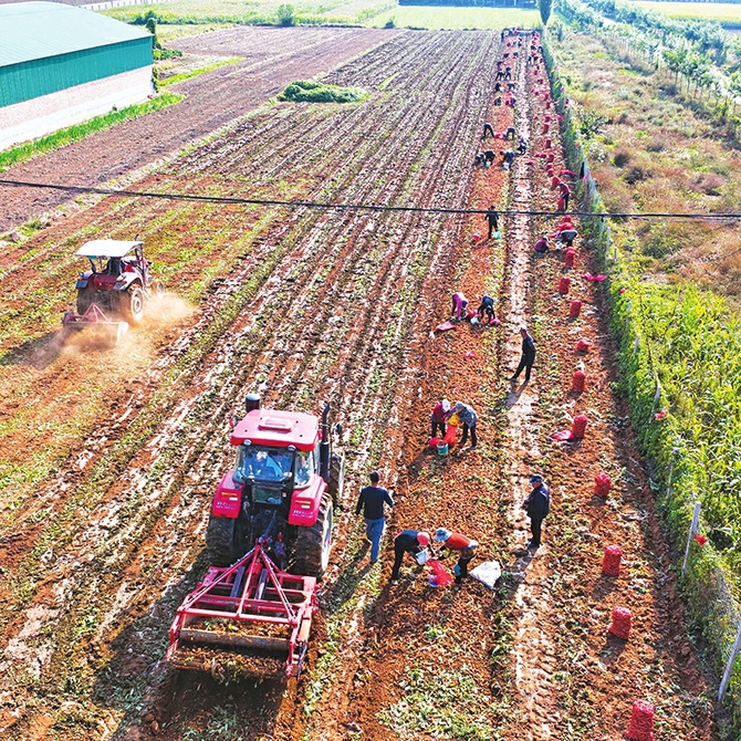 一是推动特色农业提质增效。全县新发展设施蔬菜20亩、特色露地蔬菜9200亩、设施水果300亩,大豆玉米复合种植1.01万亩,中药材春播面积1150亩。引进社会主体托管玉露香梨3000亩,打造高品质玉露香梨生产基地、农旅融合园区。二是推动畜牧业增量提质。引进落地大禹生猪一体化智慧养殖项目,总投资9亿元,目前一期已经开工,3座繁育厂房预计10月投用,出栏仔猪20万头。持续实施肉牛增量提质行动,在一期奖补700万元的基础上,二期奖补资金800万元,补贴新生犊牛5502头,母牛参保数9271头,两项补贴共计6251164.5元,通过见犊补母、金融支持、数字耳标、冻精支持,确保能繁母牛存栏在现有基础上增长10%,目前全县肉牛存栏达到2.6万头。三是推动农业产业品牌化发展。积极推荐茂洲牛肉、华尧酒、森隆山楂、御津龙山泉水等特色产品入选“临汾优选”区域公用品牌,被子垣苹果、玉露香梨认证为“圳品”。县生态产品研发中心的维纳斯苹果、富士苹果、玉露香梨、桃通过绿色产品认证。四是推动农业龙头企业发展。新认定龙头企业市级2家,全县县级以上农业龙头企业19家,创建示范合作社5个、示范家庭农场3个。上半年,全县县级以上龙头企业收入完成2.8亿元,同比增长13.9%;农产品加工企业销售收入3.3亿元,同比增长10.6%。五是加快智慧农业示范创建。根据蒲县梨果业和渔业发展实际,集成应用适宜的信息化技术装备,因地制宜推进多样化的智慧农(牧、渔)示范园区(基地)创建,实施蒲县智慧果园示范园区(基地)蒲县有机果业智慧化及全产业链建设项目,智慧渔业示范园区(基地)蒲县古坡村智慧渔业养殖项目。蒲县被子垣有机果业智慧化及全产业链建设项目被确定为市级智慧农业示范创建项目,8月9日已开工,预计年底完成。