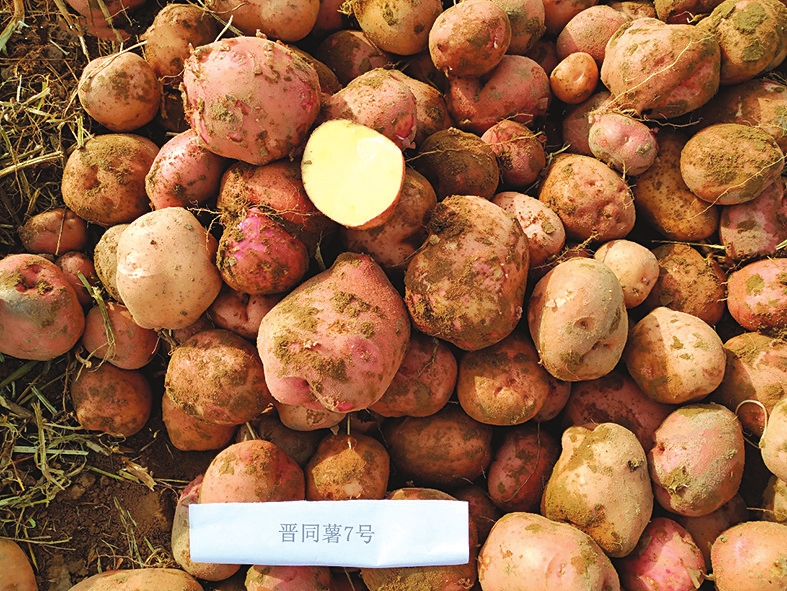 品种特性:淀粉加工鲜食兼用型品种,淀粉比晋薯16号提高2-3个百分点,综合营养品质佳,经济效益好。晚熟品种,从出苗到收获112天左右;株型半直立,生长势强;茎绿色,叶绿色,花冠白色;薯块圆形,黄皮浅黄肉,芽眼深度中等。