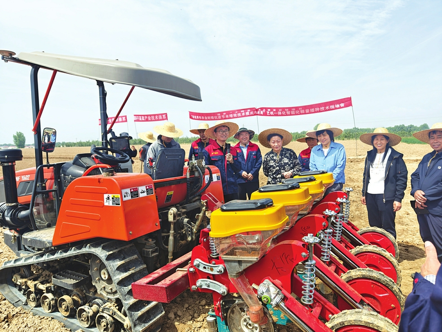 开展丘陵山区作业机械研发。为促进机械化智能化有机融合,体系开展了具有补水功能的履带式无人驾驶播种机现场作业观摩会,可适应丘陵山区谷子机械化播种,以及干旱条件下补水保苗;在繁峙县海丰农牧场高产创建基地,无人驾驶联合收割机分别按照“回”字形和“S”形两种既定线路精准进行收获作业,自动进行割台升降、行走收割、转弯掉头,收获机粮仓装满后,行驶至指定地点,可实现远程遥控卸粮等功能。该机械实现了谷子生产作业从粗放型到精准型、从费时费工到少人省工方式的转变,促进了山西省智慧农业和现代农业的快速发展,是一个可复制、可推广的智慧农业发展模式典型。