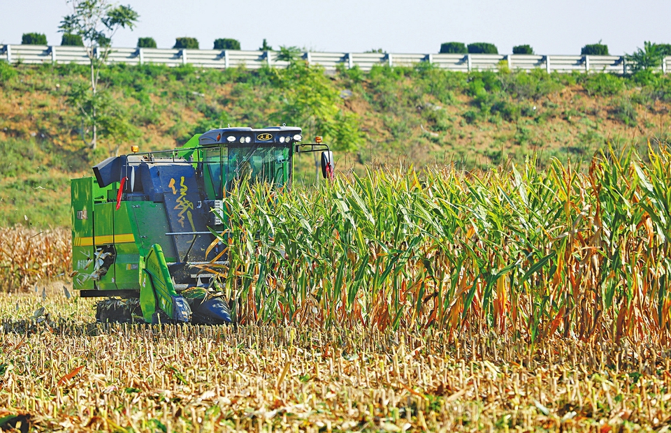 10月14日,在襄汾县邓庄镇贾庄村,一台履带式玉米收获机正在抢收玉米。为应对连阴雨天气造成的不利影响,邓庄镇聚焦“收、烘、藏、售、种”全链条环节,组织调度玉米收割机、粮食烘干机、小麦播种机等130余台农业机械,持续开展抢收抢烘抢种“三秋”生产各项工作,确保全镇4.2万亩玉米尽早收获归仓,冬小麦种足种好。