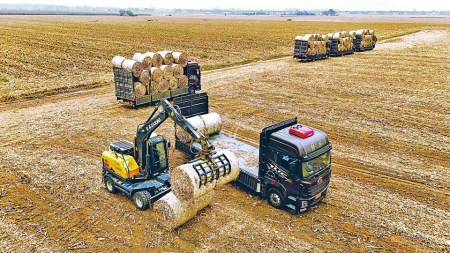 11月5日,在万荣县黄河滩地上,种植户忙着实施玉米秸秆打捆和装车运输作业。近年来,万荣县积极推广玉米秸秆回收利用,把废弃的玉米秸秆加工成牲畜饲料,既避免了废弃农作物对环境造成的污染,又降低了养殖成本,增加了农民收入。