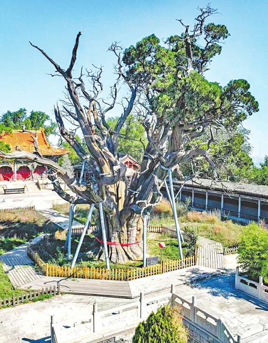 秦柏古树苍劲的枝干,枝梢曲异争腾,体现的是向下扎根、向上生长的古树文化,展现的是一种坚韧不拔、力争上游的奋斗精神、担当精神,这种精神早已融入当地人的血脉,成为介休人民在历史长河中奋勇前行的生动写照。